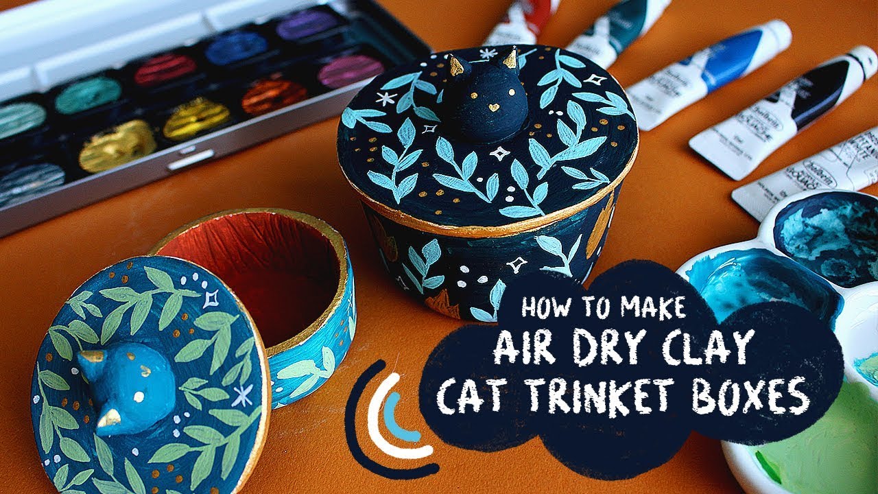 Diy How To Make Illustrated Cat Trinket Boxes Using Air Dry Clay Diy Air Dry Clay Air Dry Clay Clay Box
